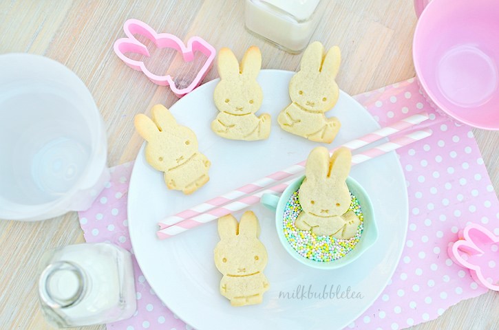 Place the tray in the fridge to chill for 15 minutes. This is to make sure Miffy doesn’t change shape when she’s in the oven.