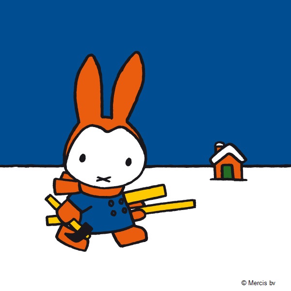 After the presents have been opened, it’s time for Miffy to go play while she waits for her Christmas dinner. Last night it snowed so Miffy is very excited to play outside! She spends most of the morning riding her sledge, skating on the frozen river and even makes a snowman.