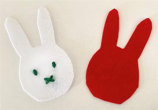 First, you will need to trace Miffy onto both pieces of felt. If your feeling artistic you can do this freehand, but you can also ask your parent or guardian to print out a template for you. It’s important that both Miffy-shaped pieces of felt are the same shape and size. You can then carefully cut out your bunny design.