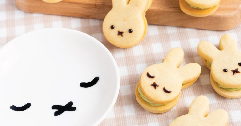 Recipe and image credit – https://sukoshimart.com/blogs/mo-sukoshi/miffy-vanilla-matcha-sandwich-cookies-a-galentines-day-treat