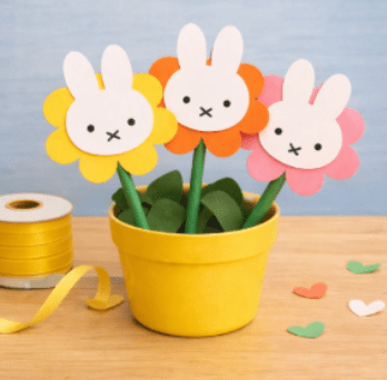 Place your Miffy paper flowers in a vase, attach them to a card, or use them as decorations for a craft wall.